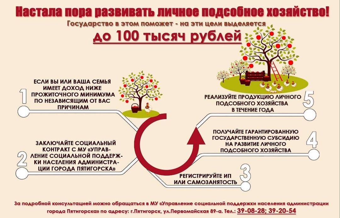 Государство выделяет субсидию на развитие бизнеса и личного подсобного хозяйства при заключении социального контракта.