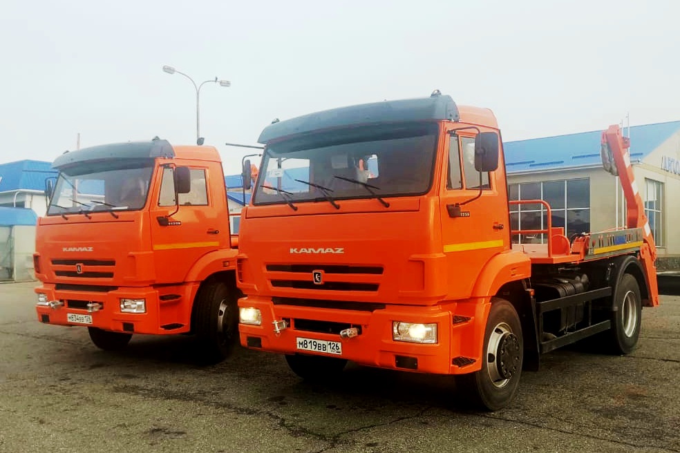 Парк техники пополнили и другие машины со специализированным оборудованием. Для ликвидации свалок приобретен новый ломовоз на шасси КАМАЗ. Он уже направлен в станицу Ессентукскую и поселок Нежинский.