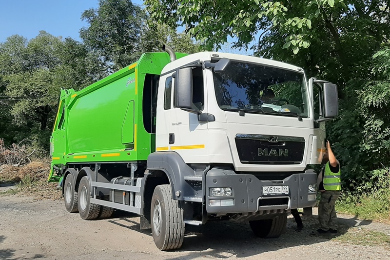 Спецтехника голландского производства на шасси MAN проходит испытания на нескольких маршрутах сбора твердых коммунальных отходов и параллельно забирает крупногабарит.
