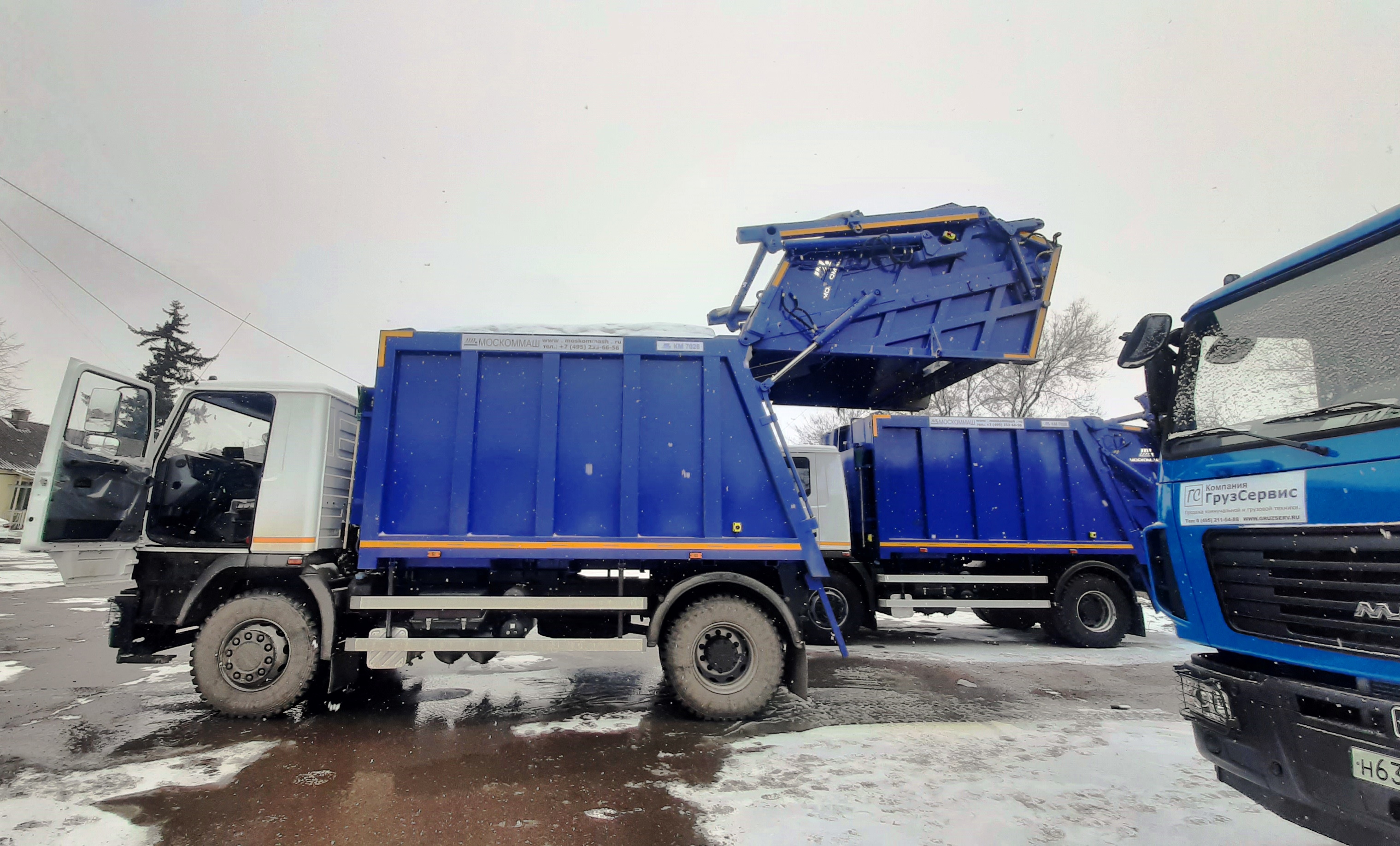 Все три новых спецмашины собраны на шасси МАЗ. Спецоборудование российского производства с вместительным кузовом объемом до 16 куб. м и задней загрузкой. Мусоровозы предназначены для работы с евроконтейнерами любой емкости и удобны для пакетного сбора отходов. В числе плюсов — высокая работоспособность и быстрый цикл и высокий коэффициент прессования.