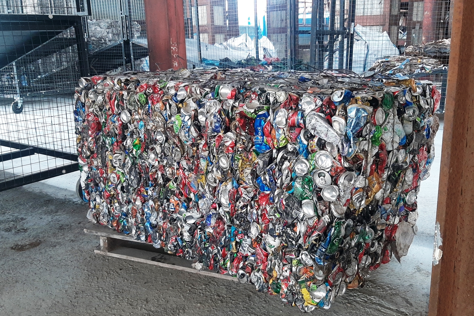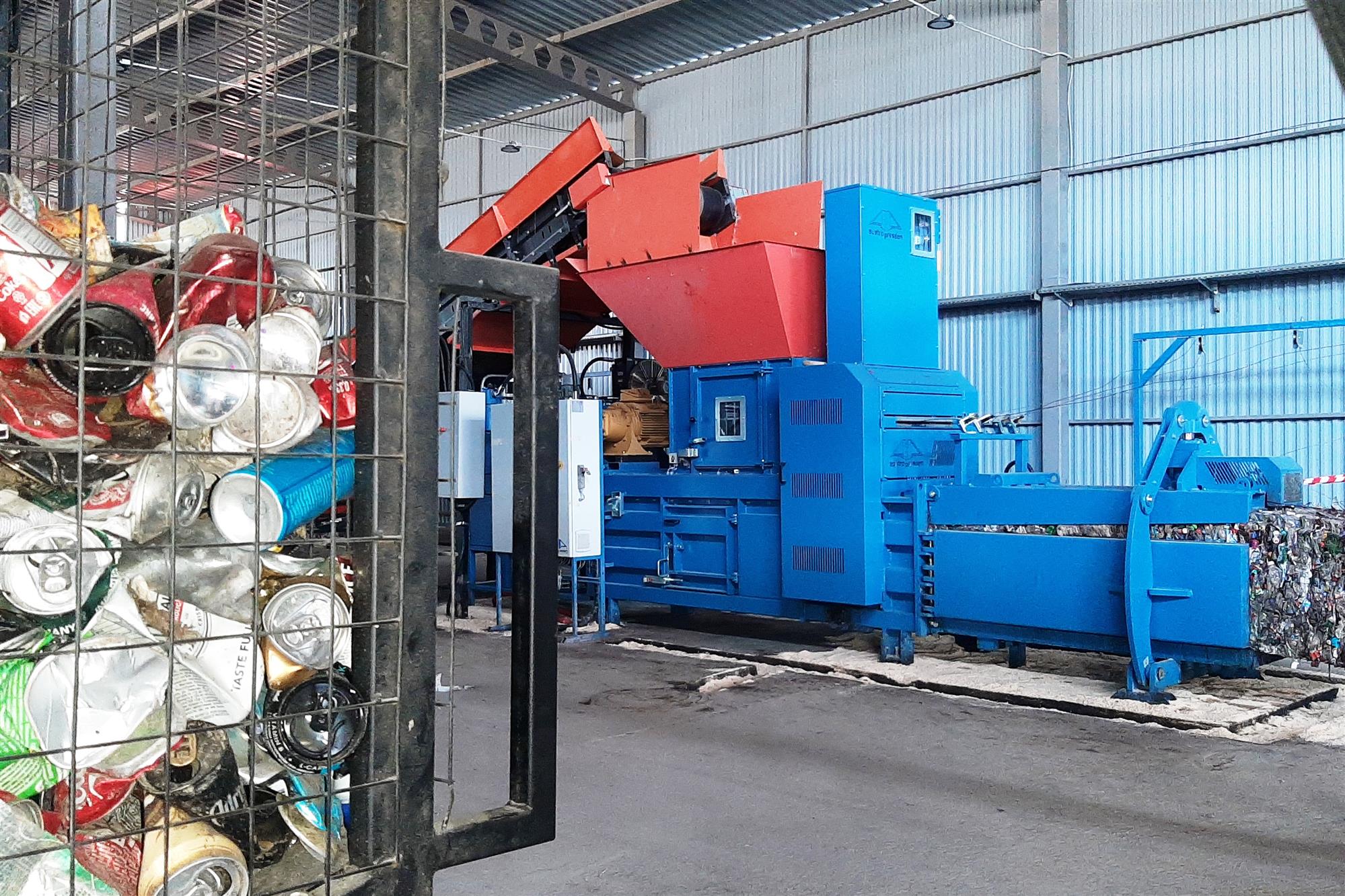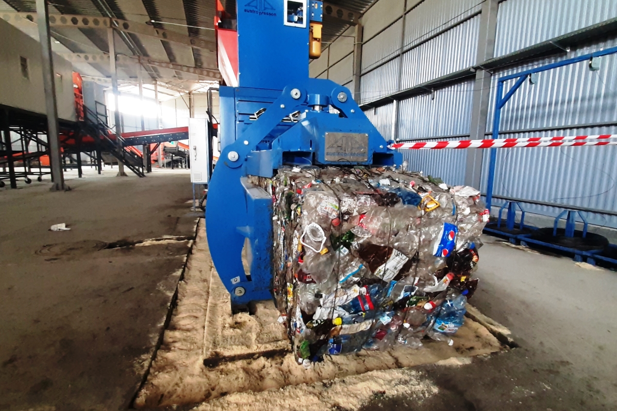 Пластик и металл прессуются в кипы.