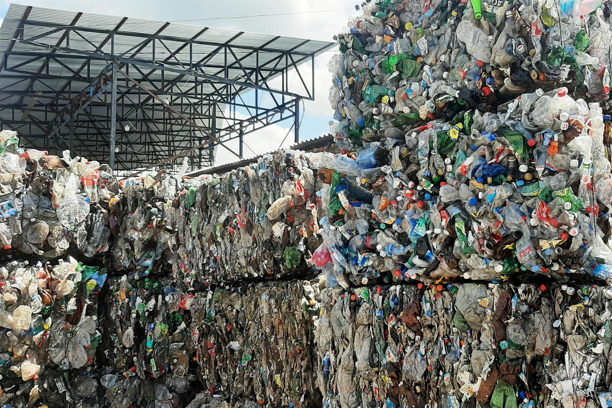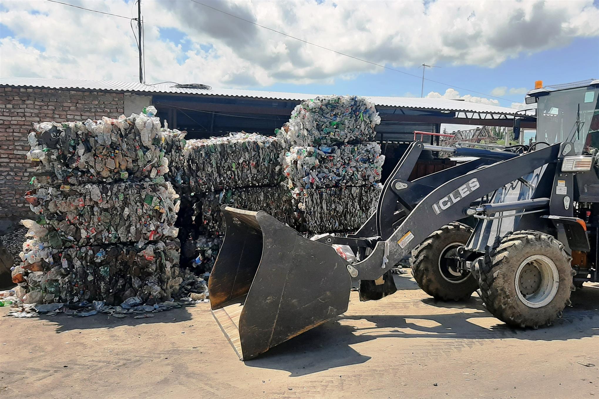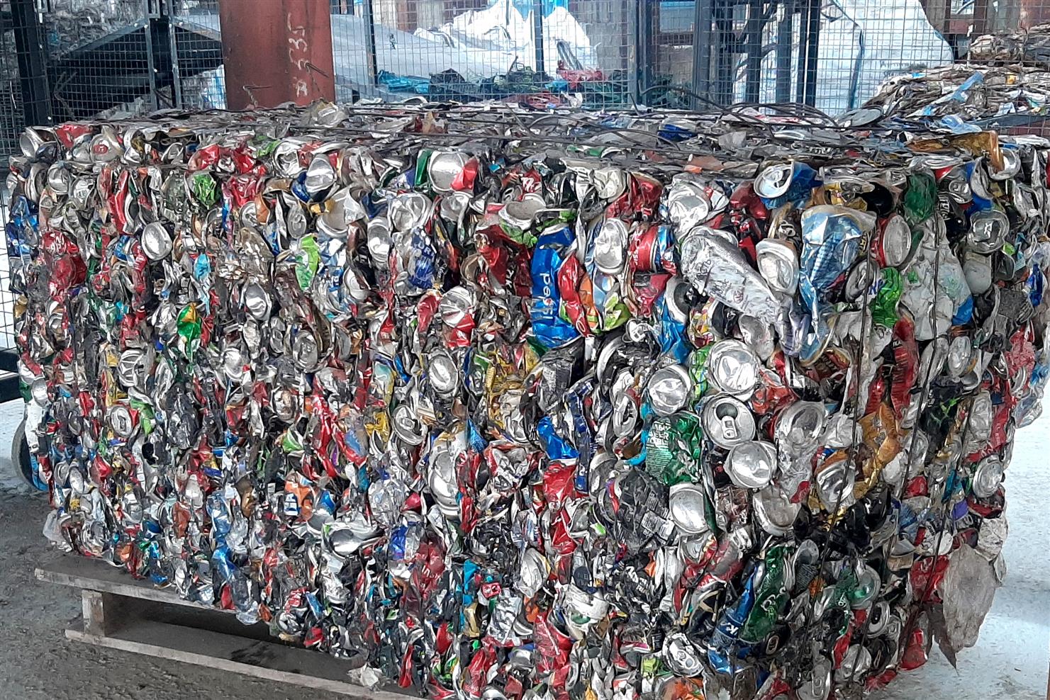 Пластик и металл прессуются в кипы.