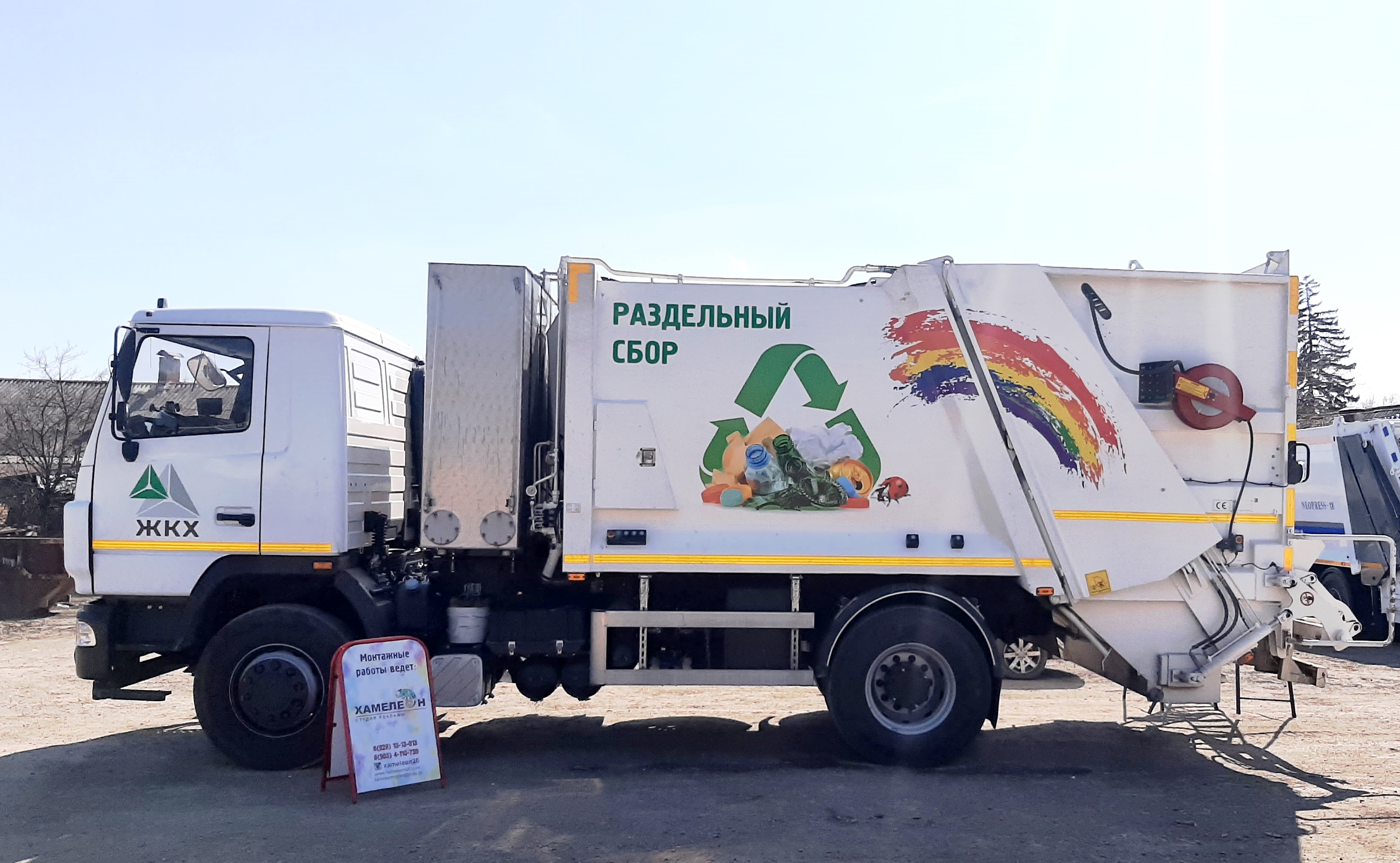 Обслуживает сетчатые контейнеры машина «Радуга» — чистая техника для чистых отходов. В ее маршруте нет места полигонам! «Радугу» ждут на сортировочных станциях. Там идет разбор по фракциям, прессовка пластика и металла, подготовка к транспортированию на перерабатывающие предприятия.
